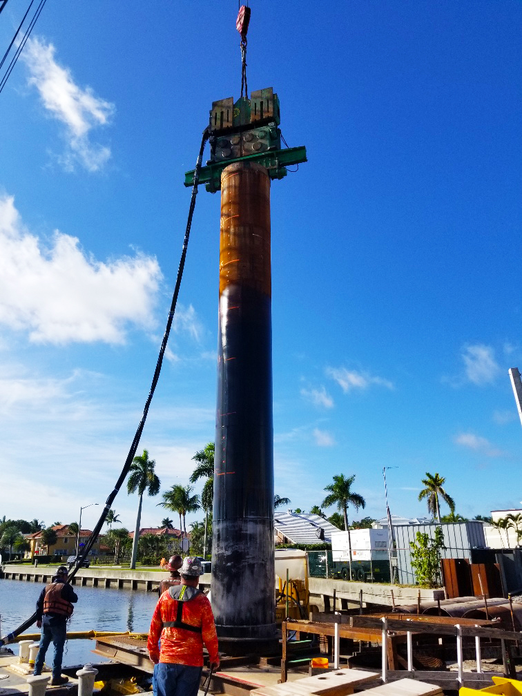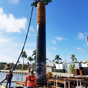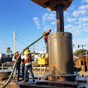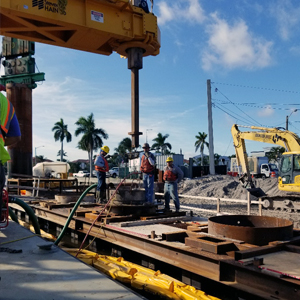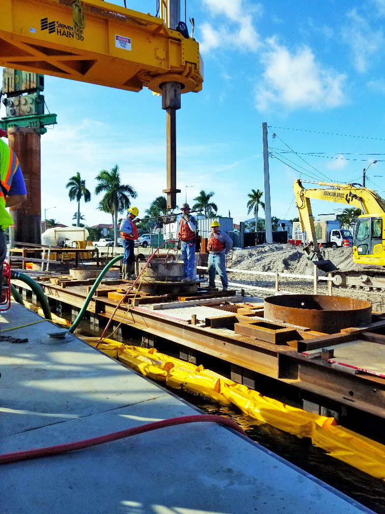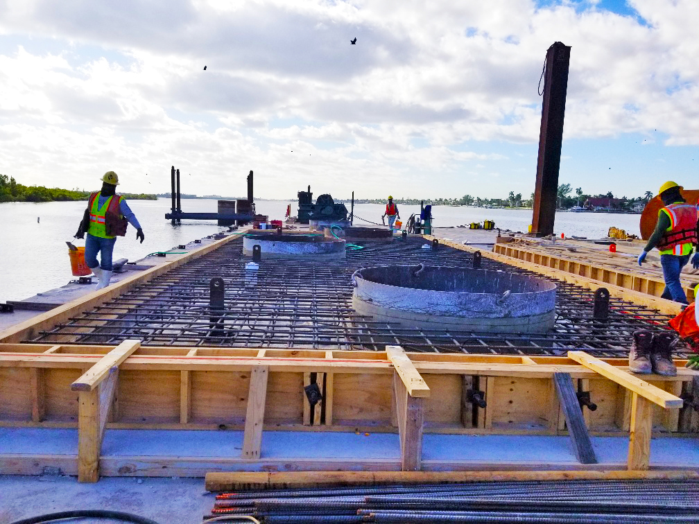 Crews work on a drill shaft for the western abutment of the bascule bridge. December 2018