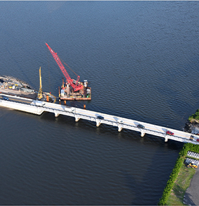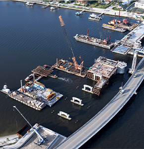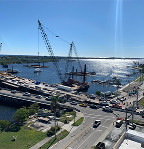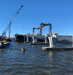 Intermediate piers for the main bascule bridge’s east approach are completed. December 2020