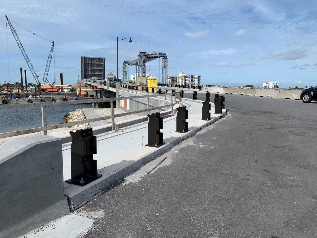 Lights and railing are installed on the bascule bridge’s western approach. December 2021