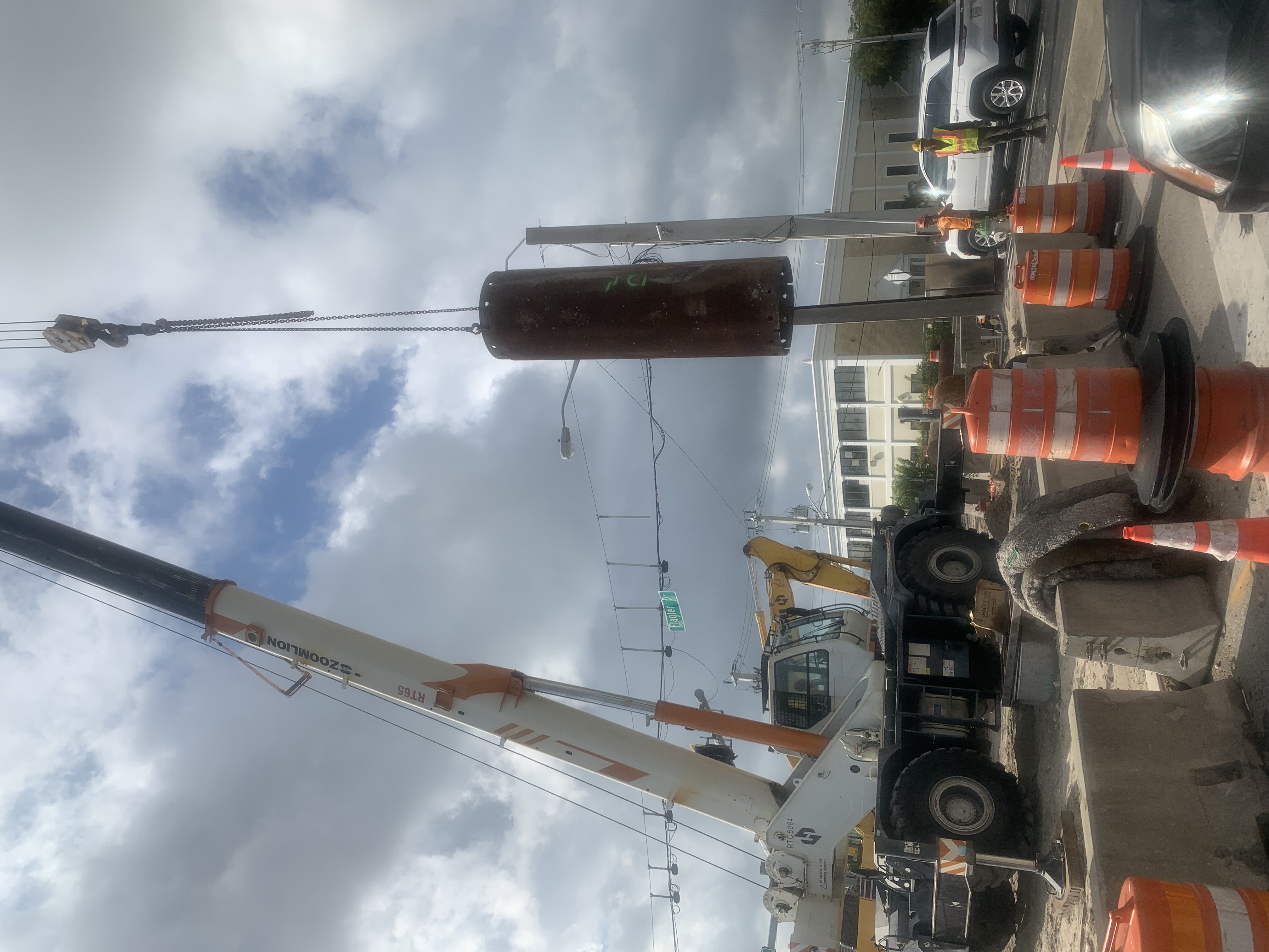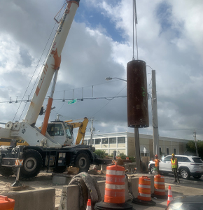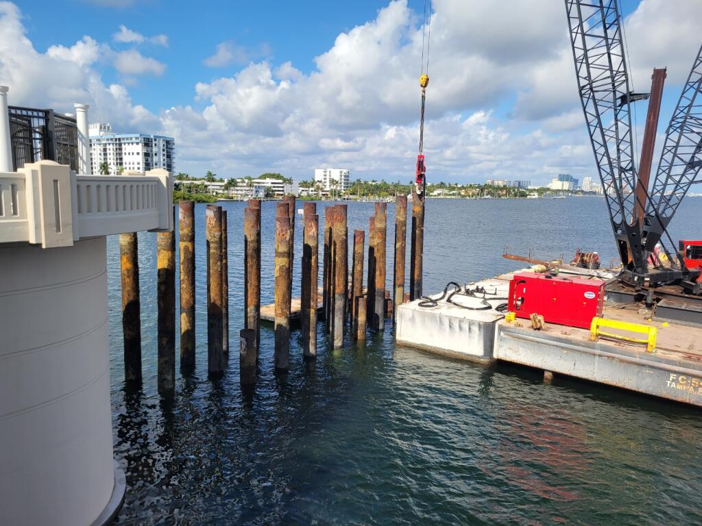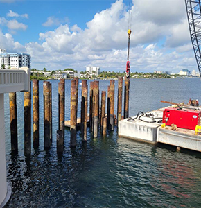 Remaining piles from the temporary bridge are removed. December 2022