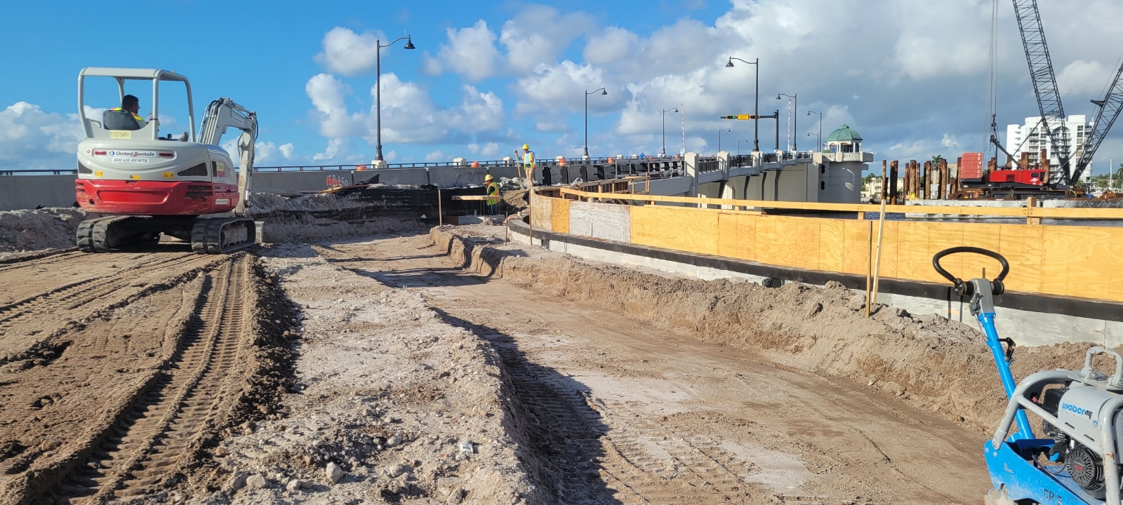 Crews work on the eastern abutment of the bridge. December 2022