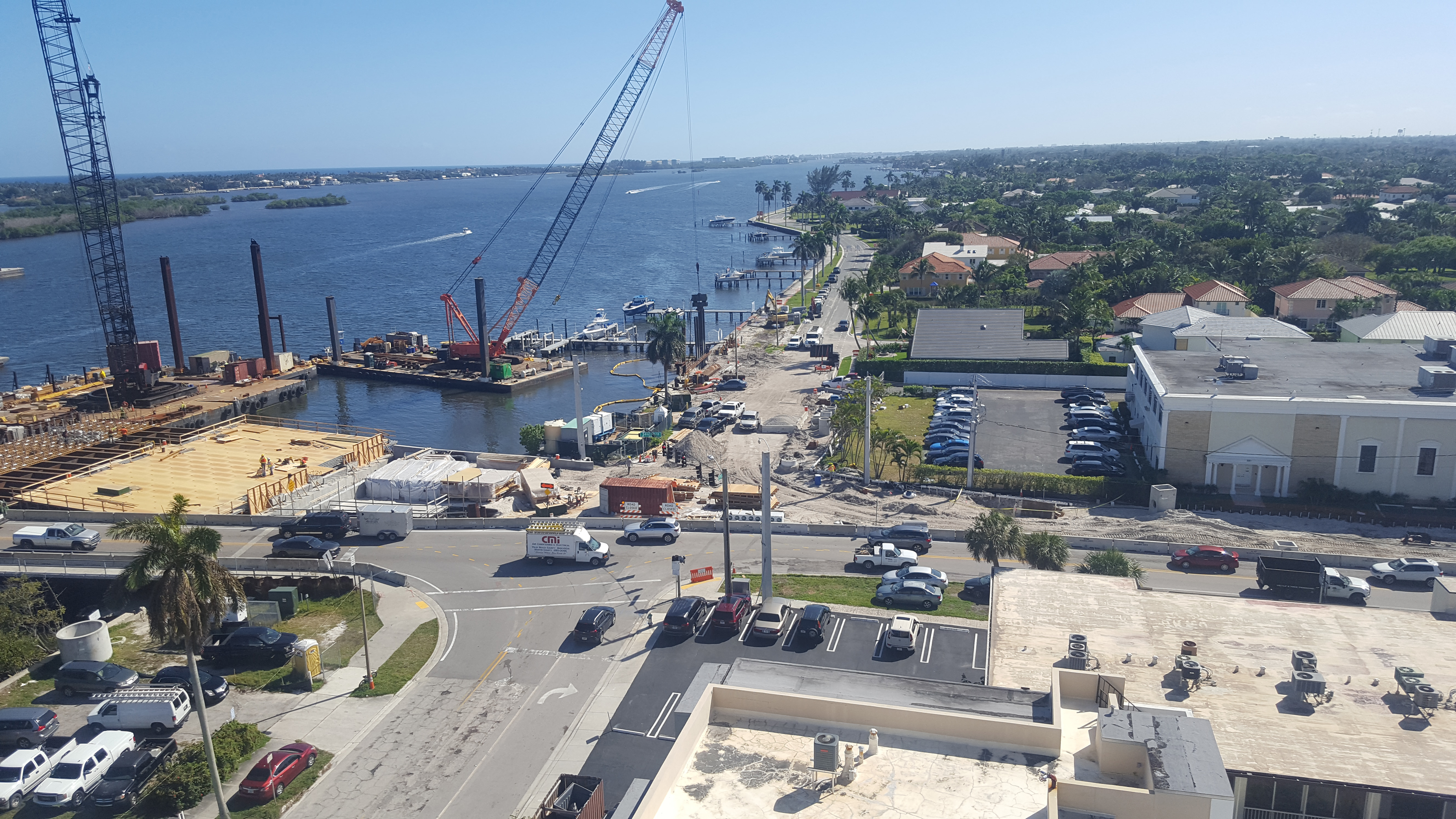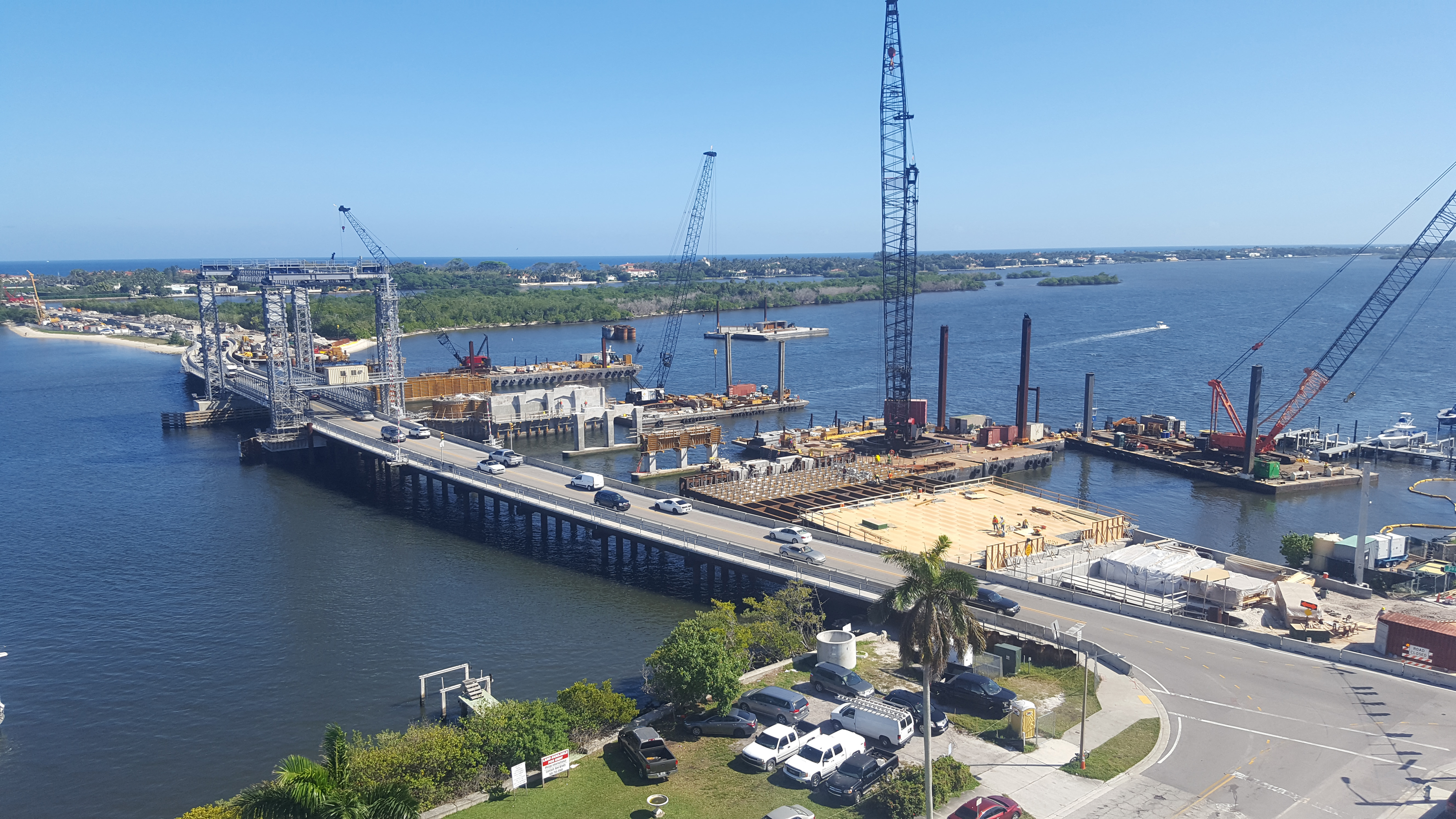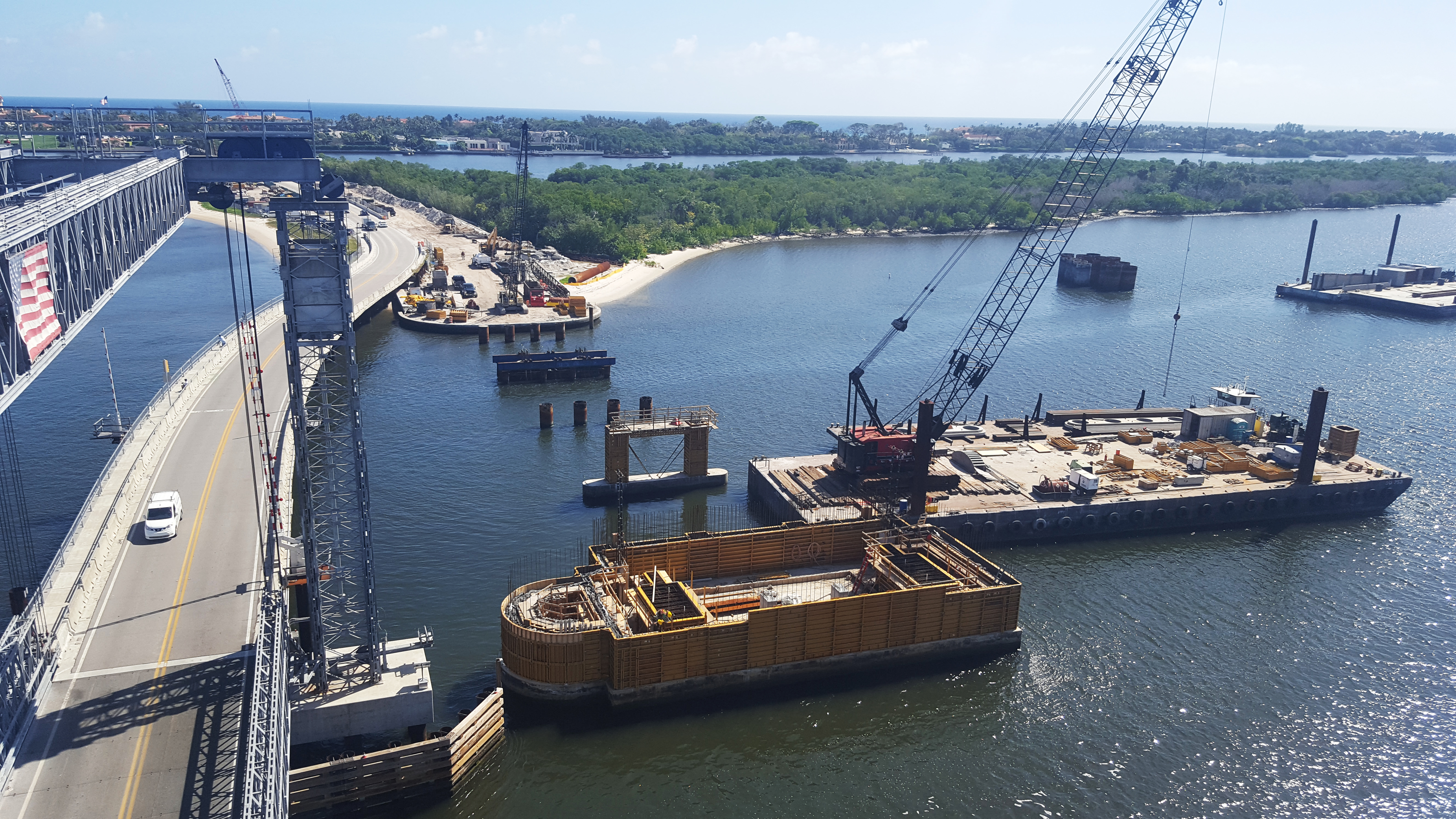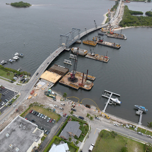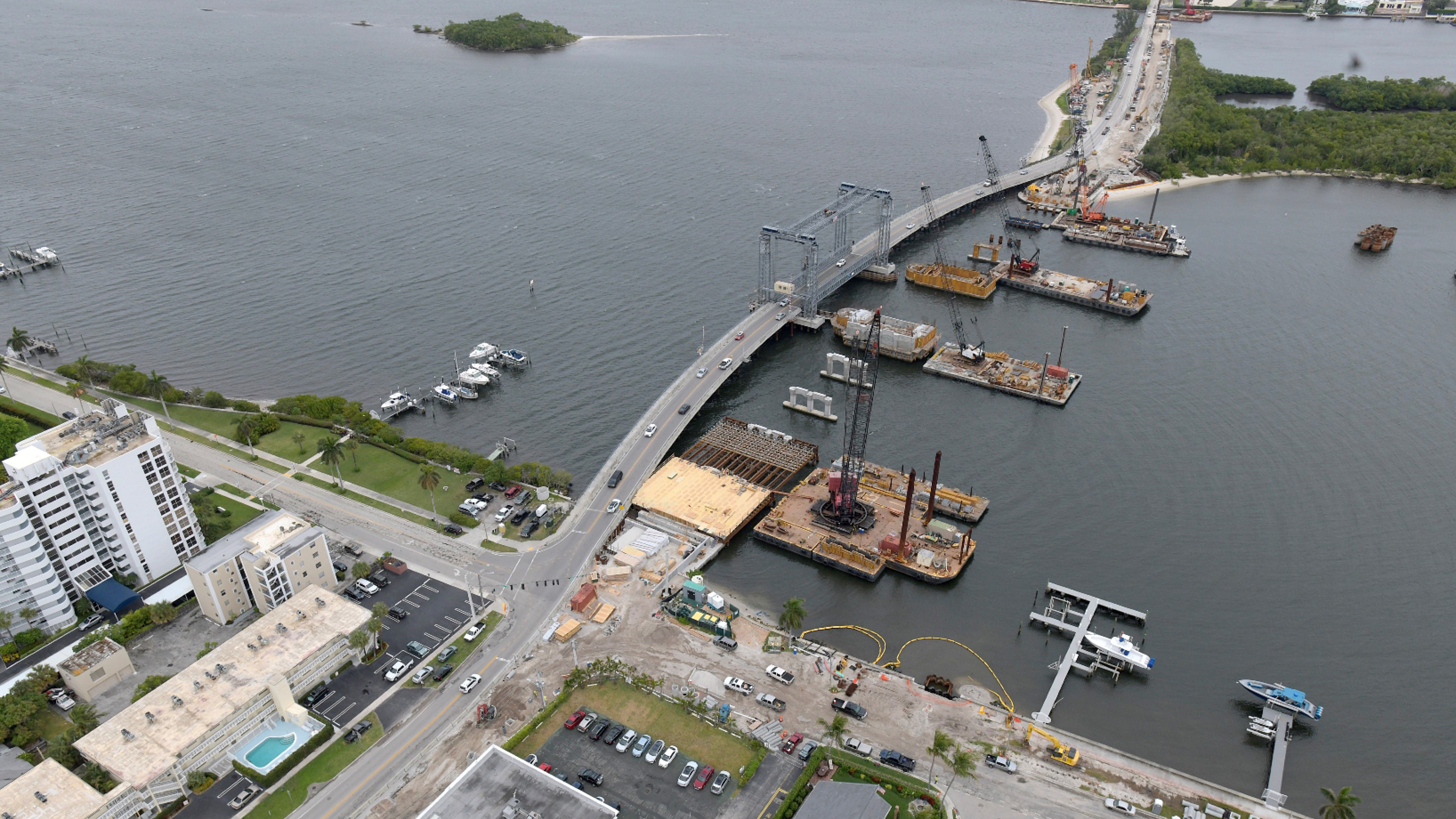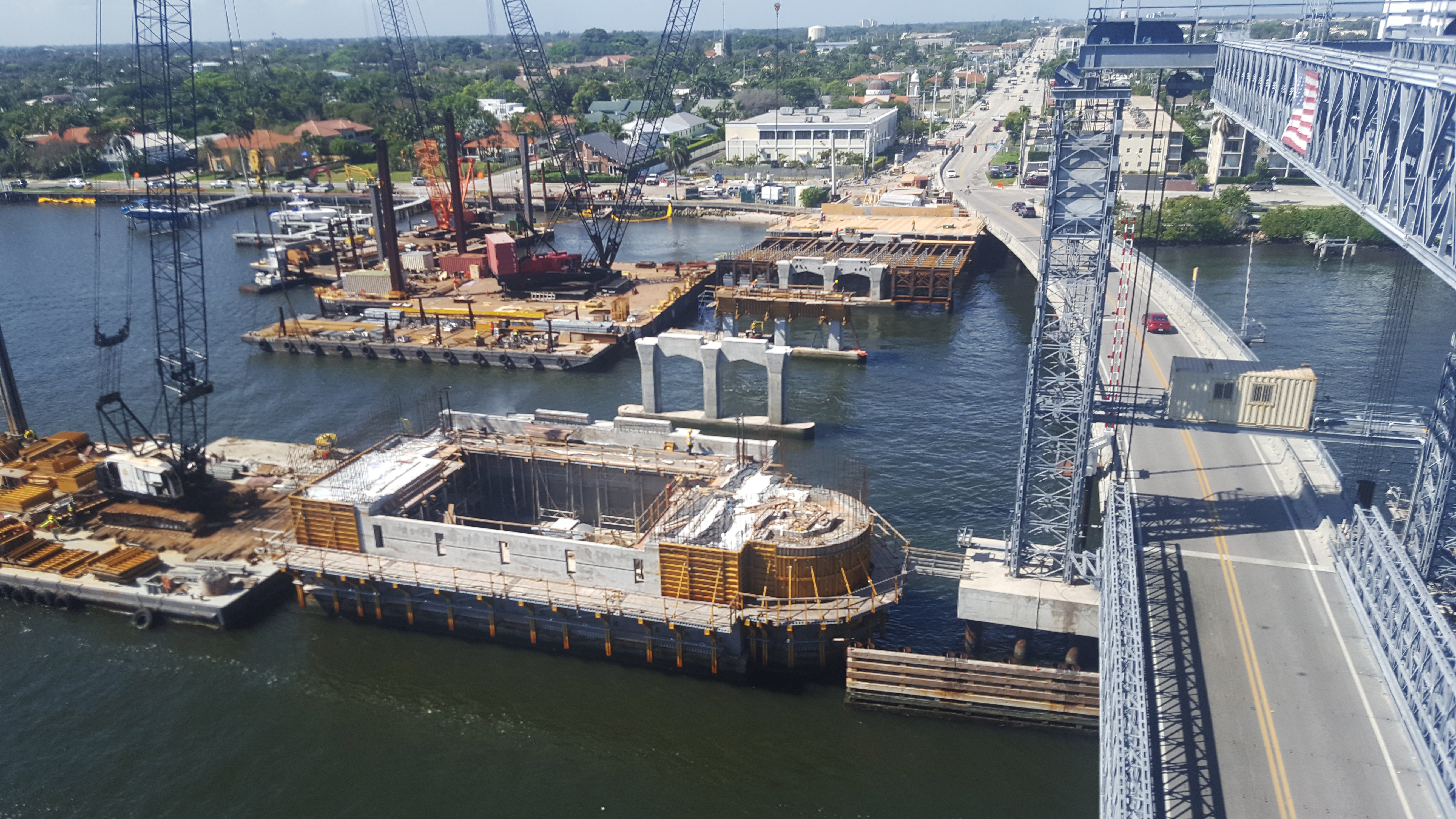 An aerial view shows the progress of the movable bridge construction. February 2020
