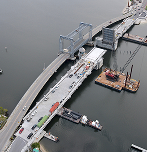 A bird’s eye view of the bascule bridge’s western approach. January 2022