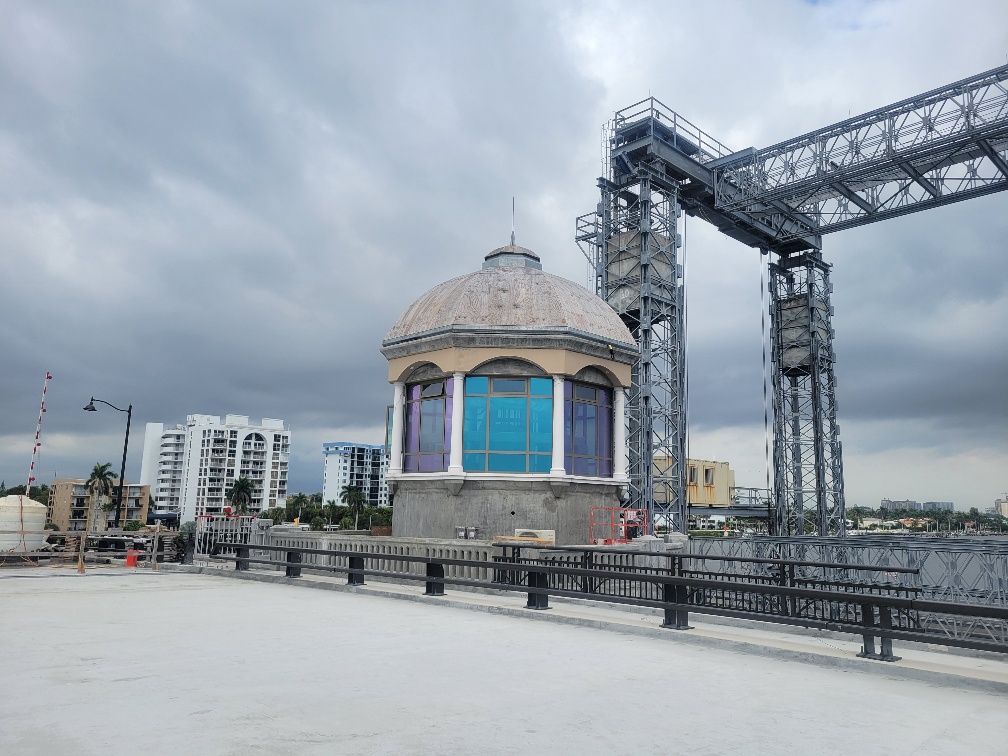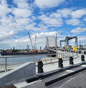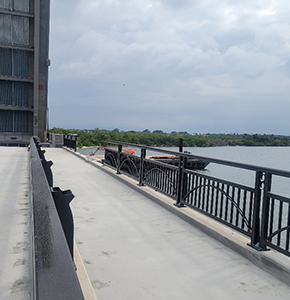 Railing installation continues on the bascule bridge’s eastern approach. January 2022
