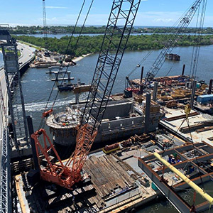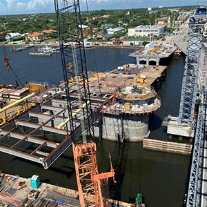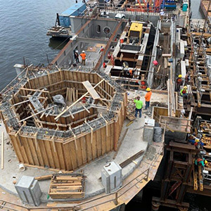 Construction continues on the east main pier for the bascule bridge. July 2020