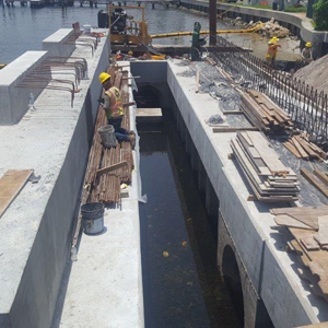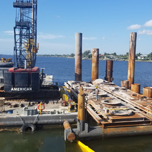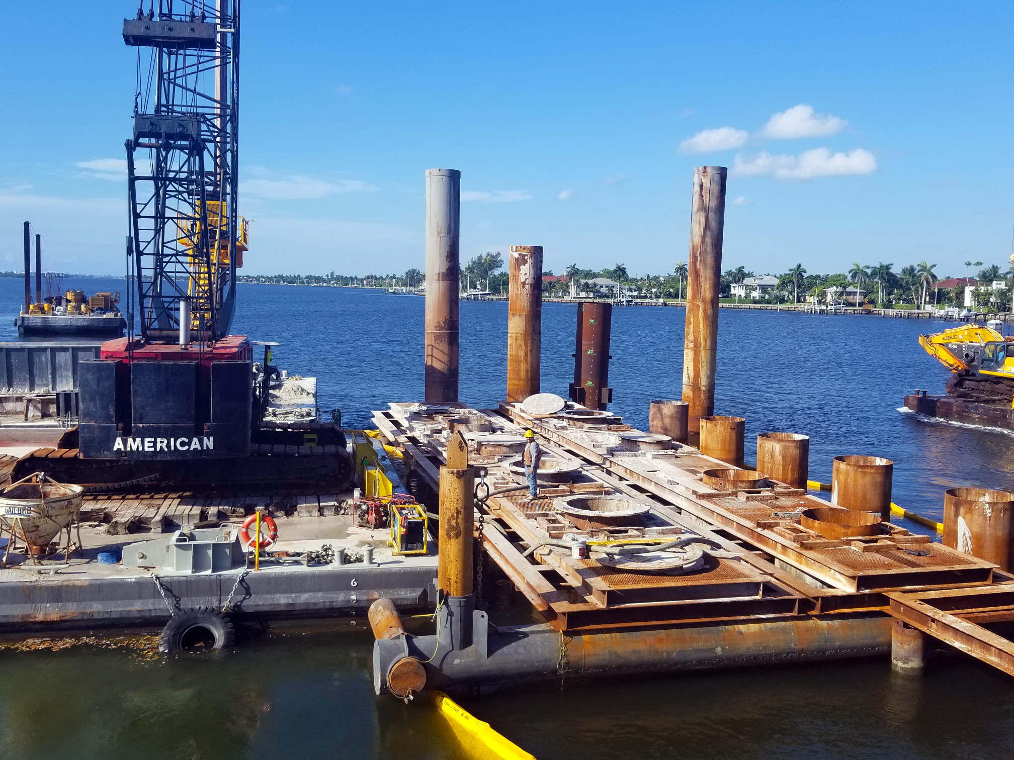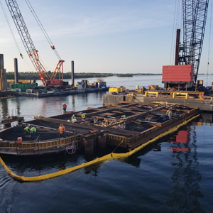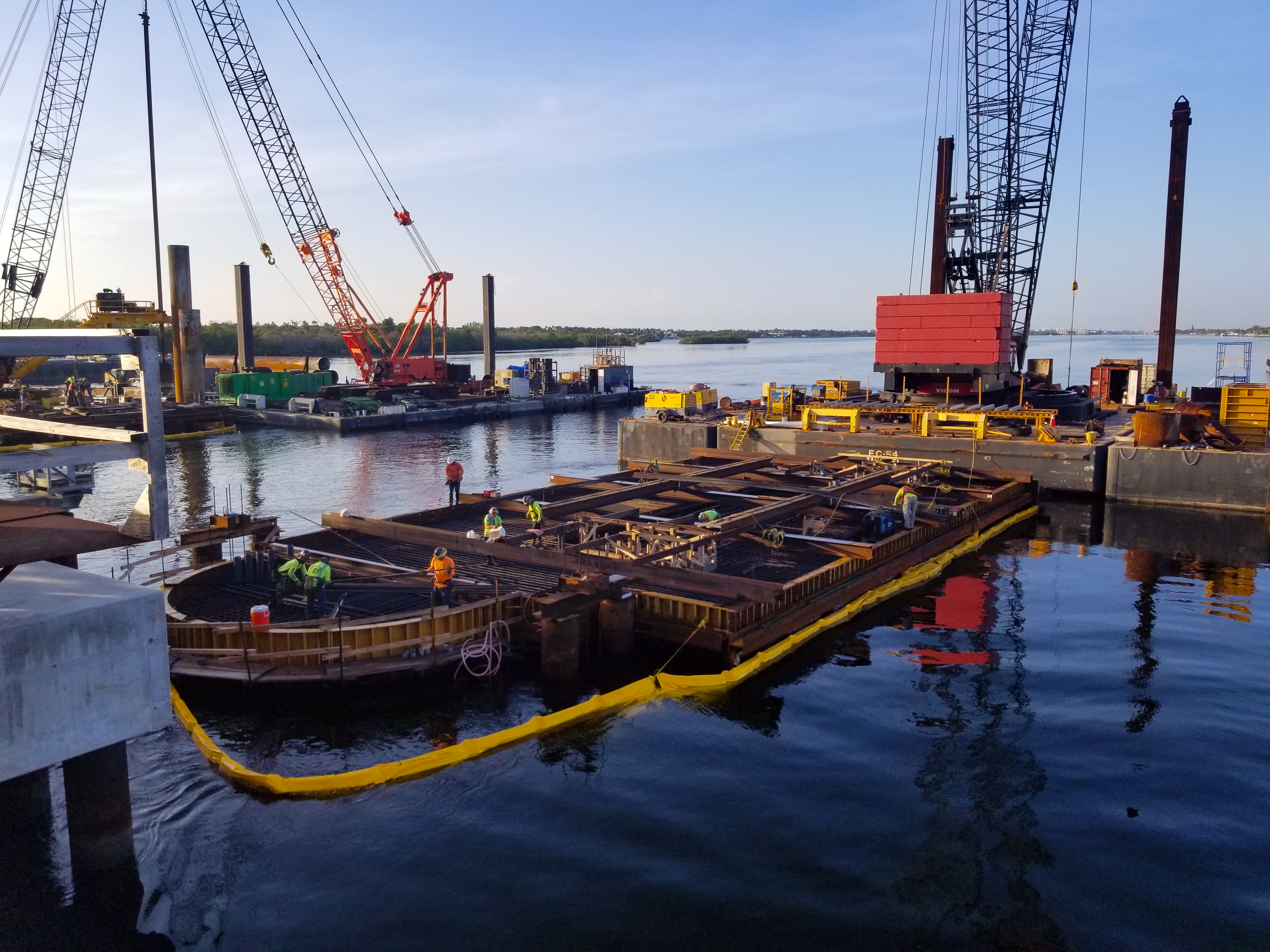 Crews focus on constructing the foundations for the replacement bridge’s piers. June 2019