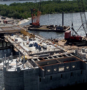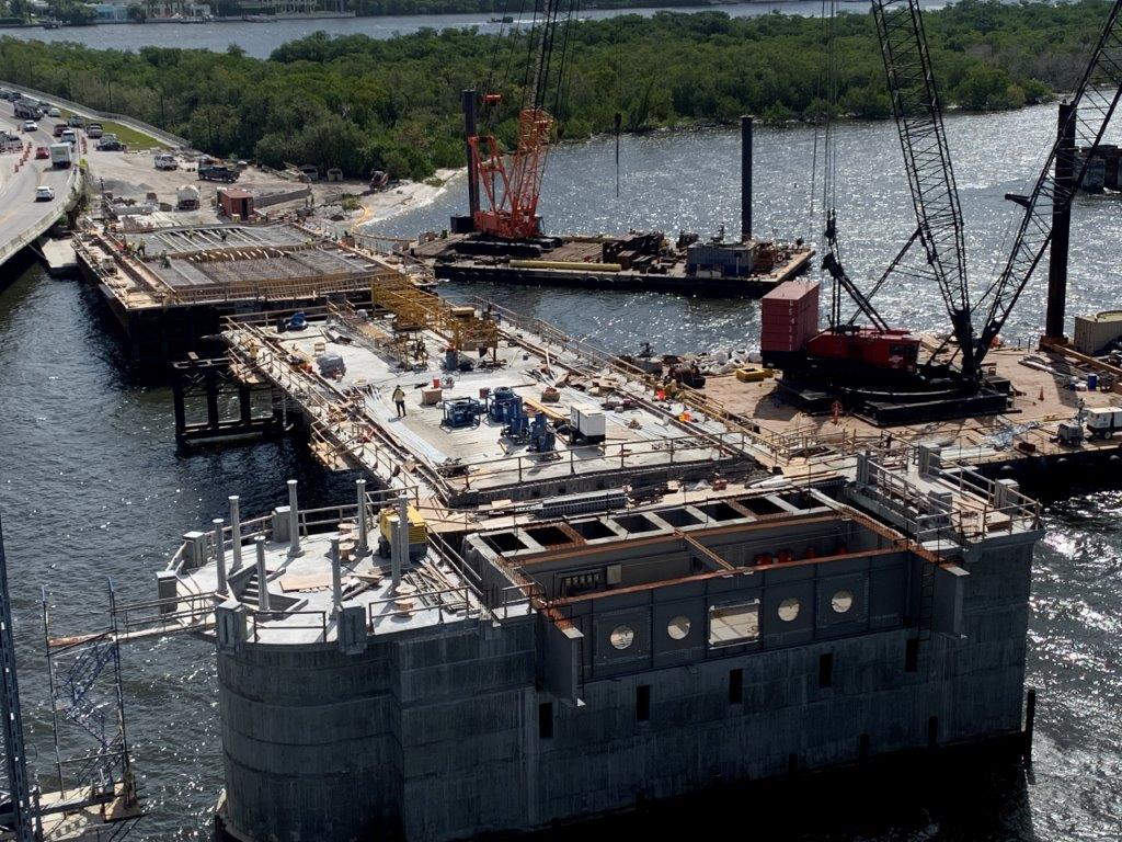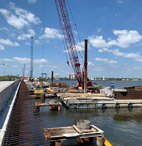 Foundations are constructed for the north side of the tide relief bridge. March 2021