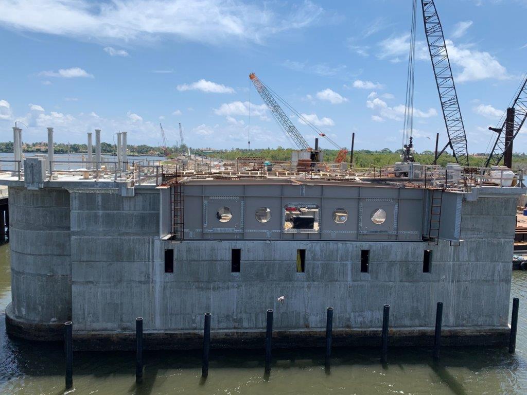 All the bascule bridge deck spans are in place. May 2021