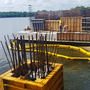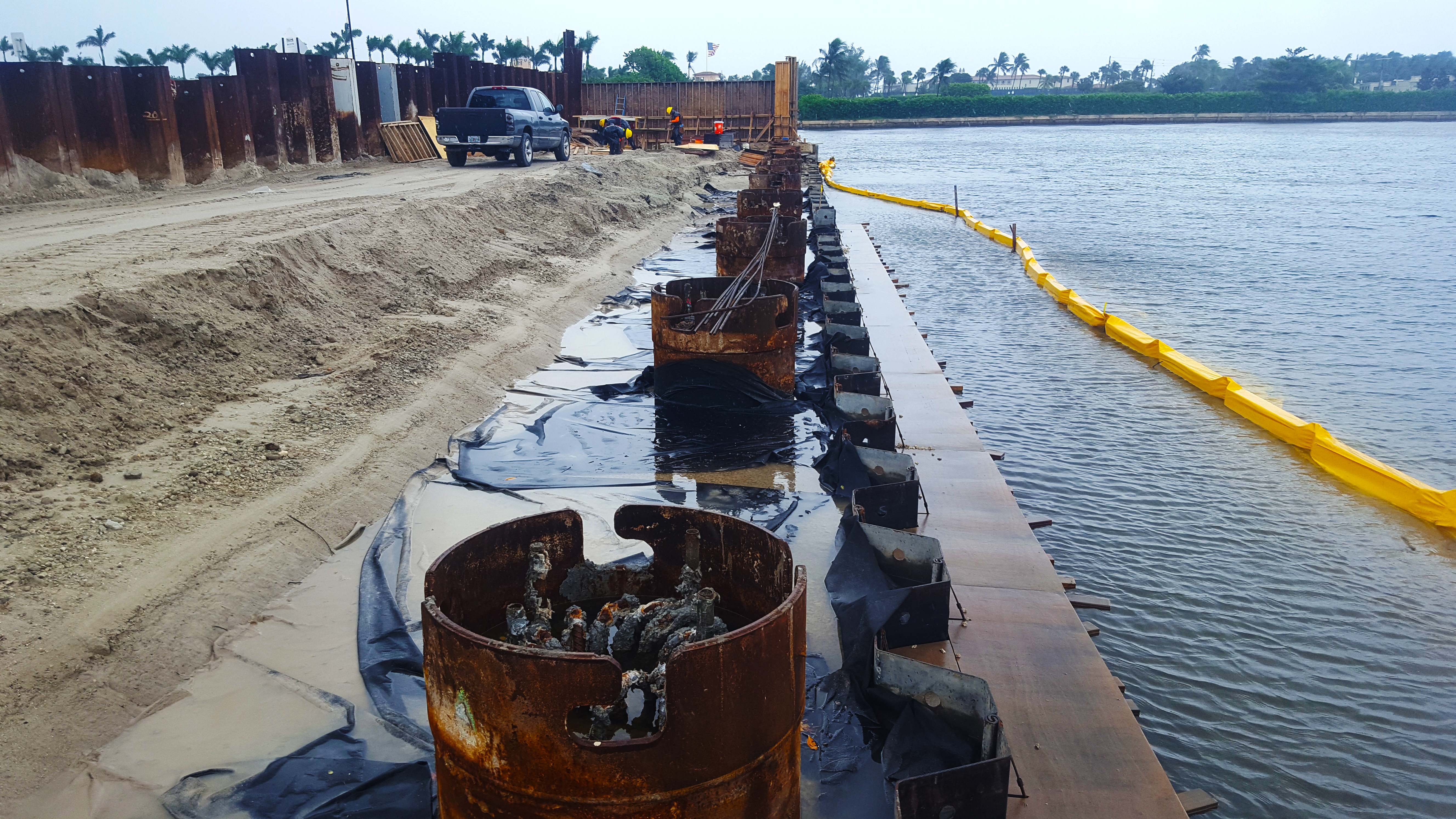 Foundations are installed for a permanent wall near the tide relief bridge. November 2019