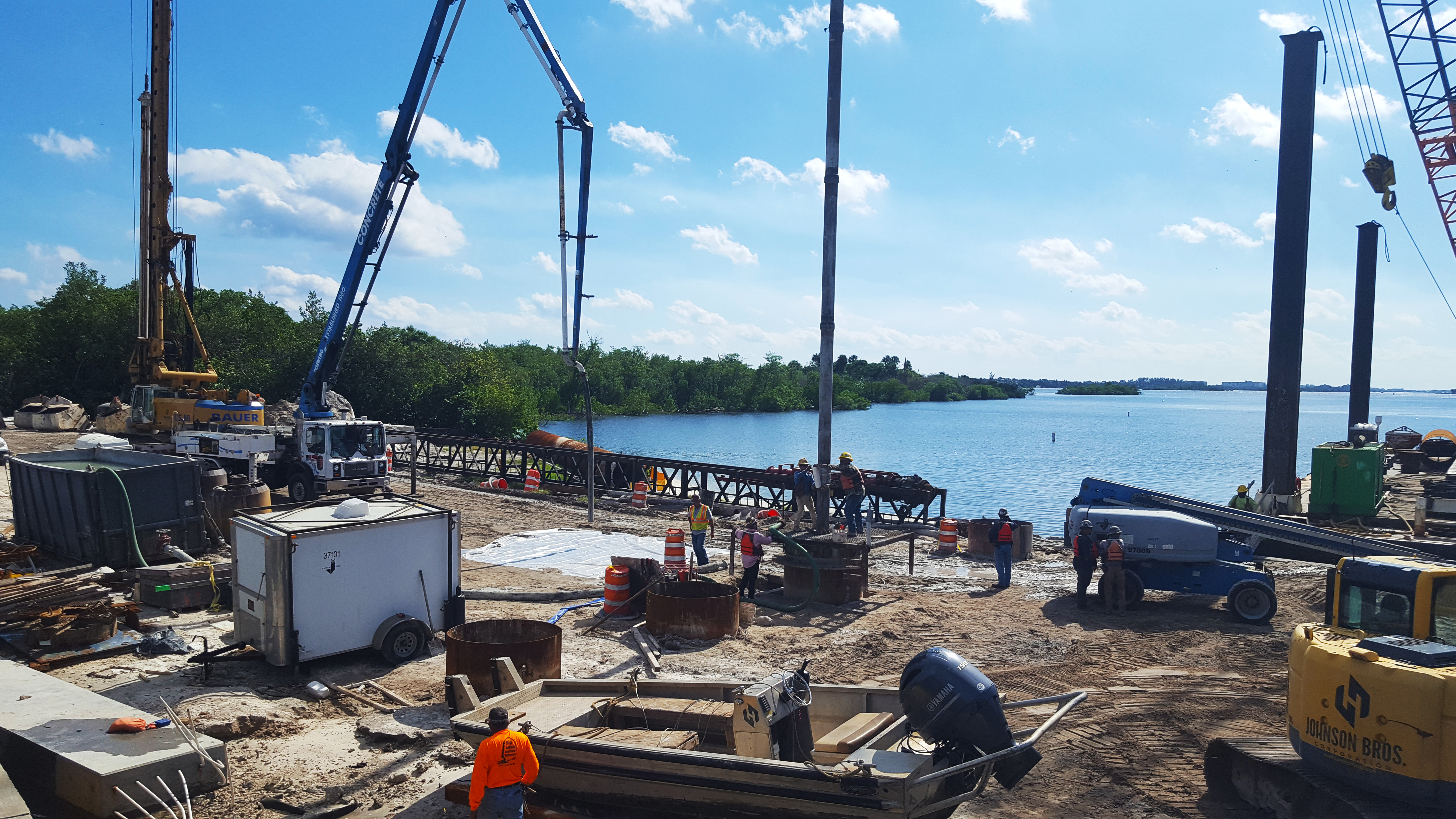 Drill shafts are installed at the eastern abutment of the movable bridge. November 2019