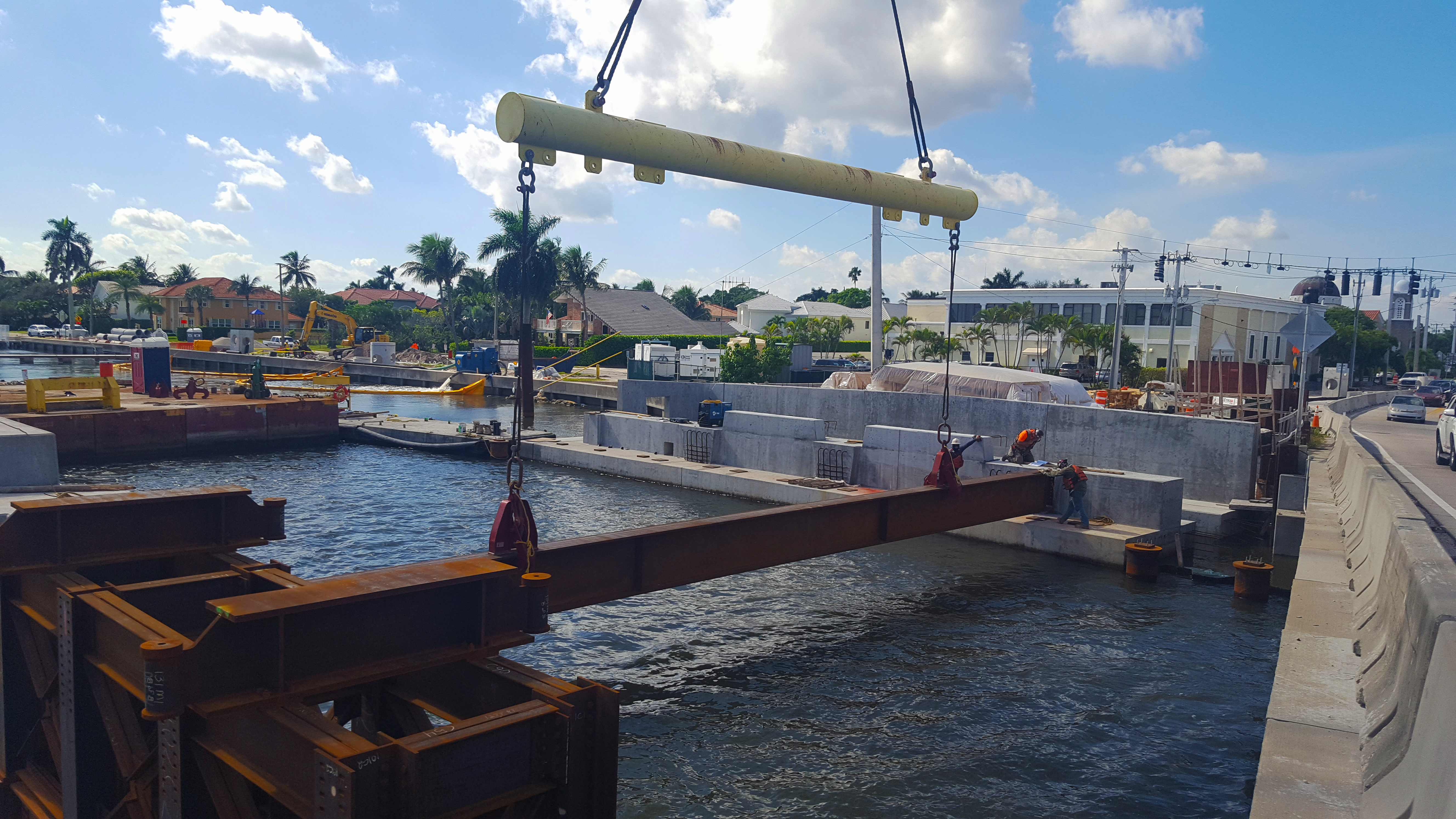 Work begins on installing a span on the movable bridge’s western approach. November 2019