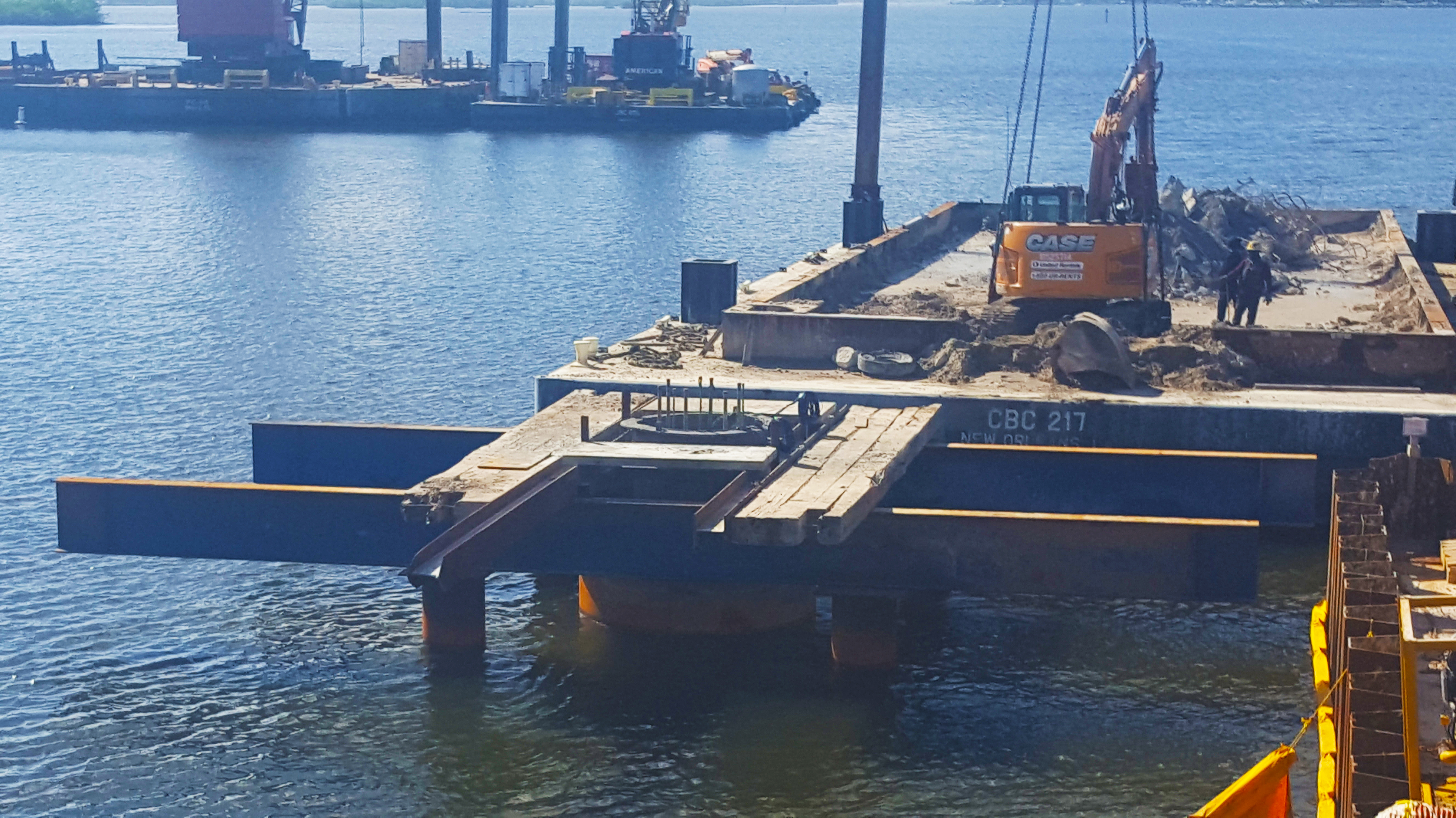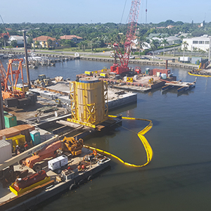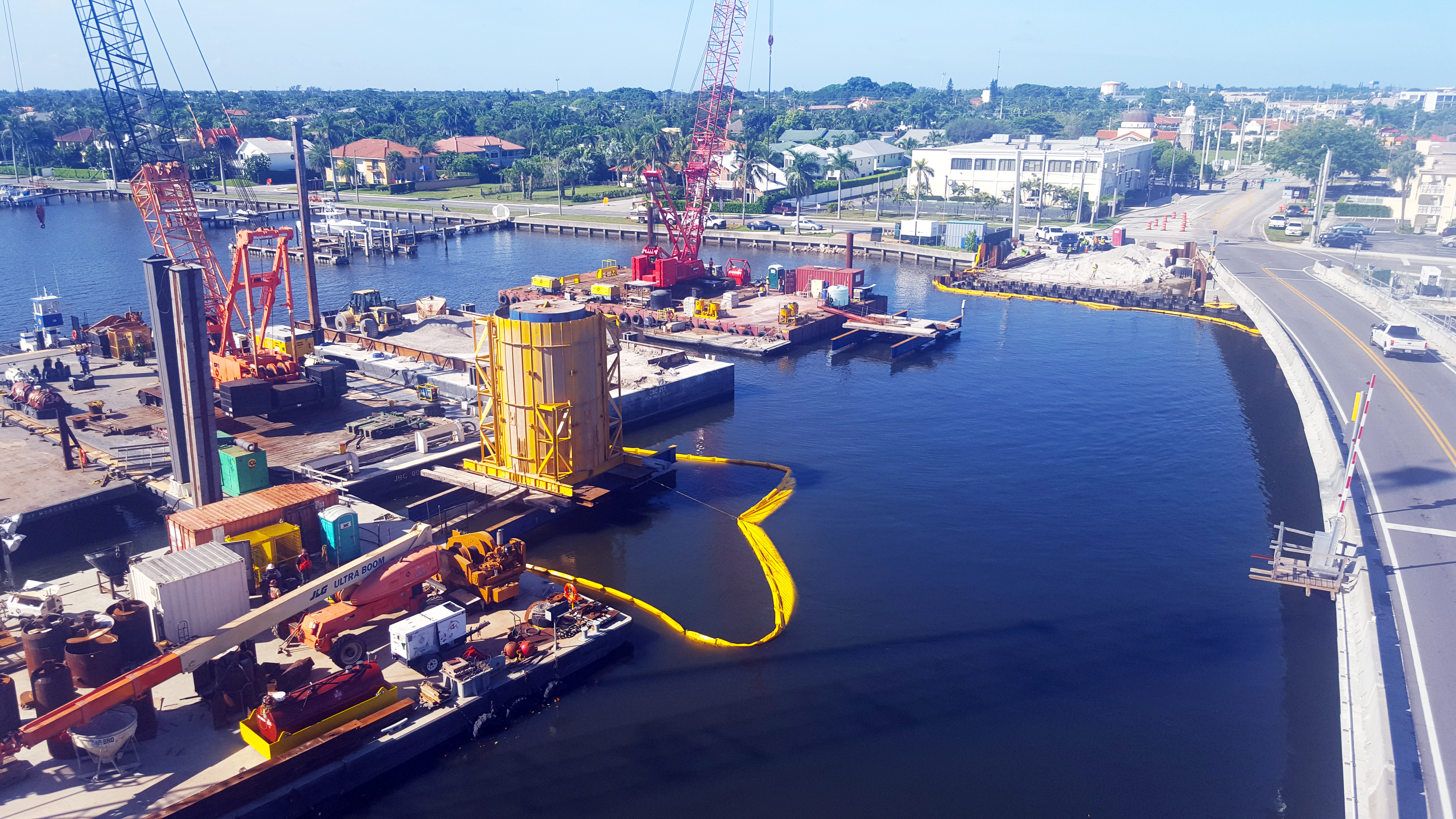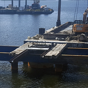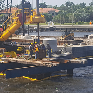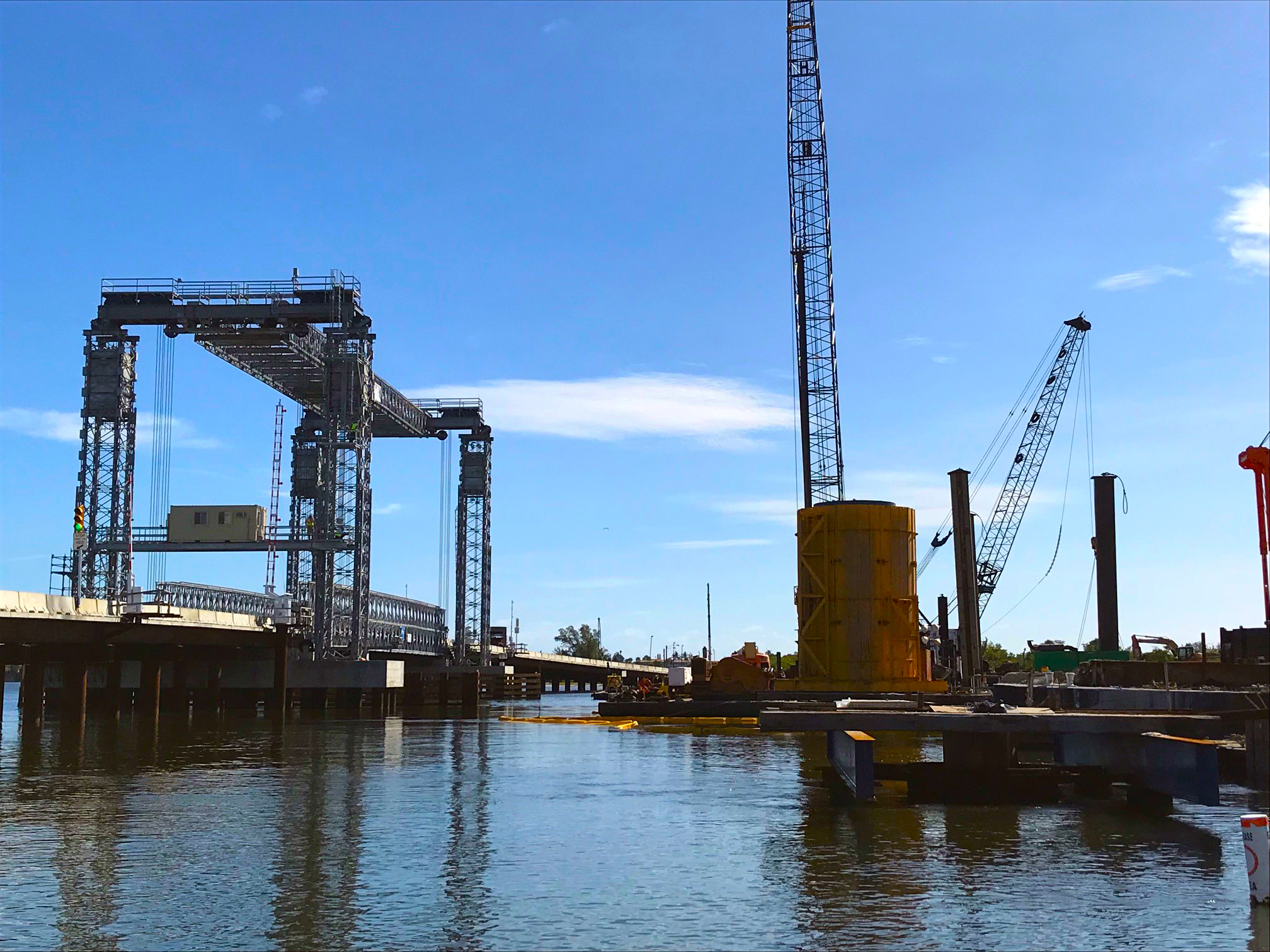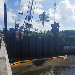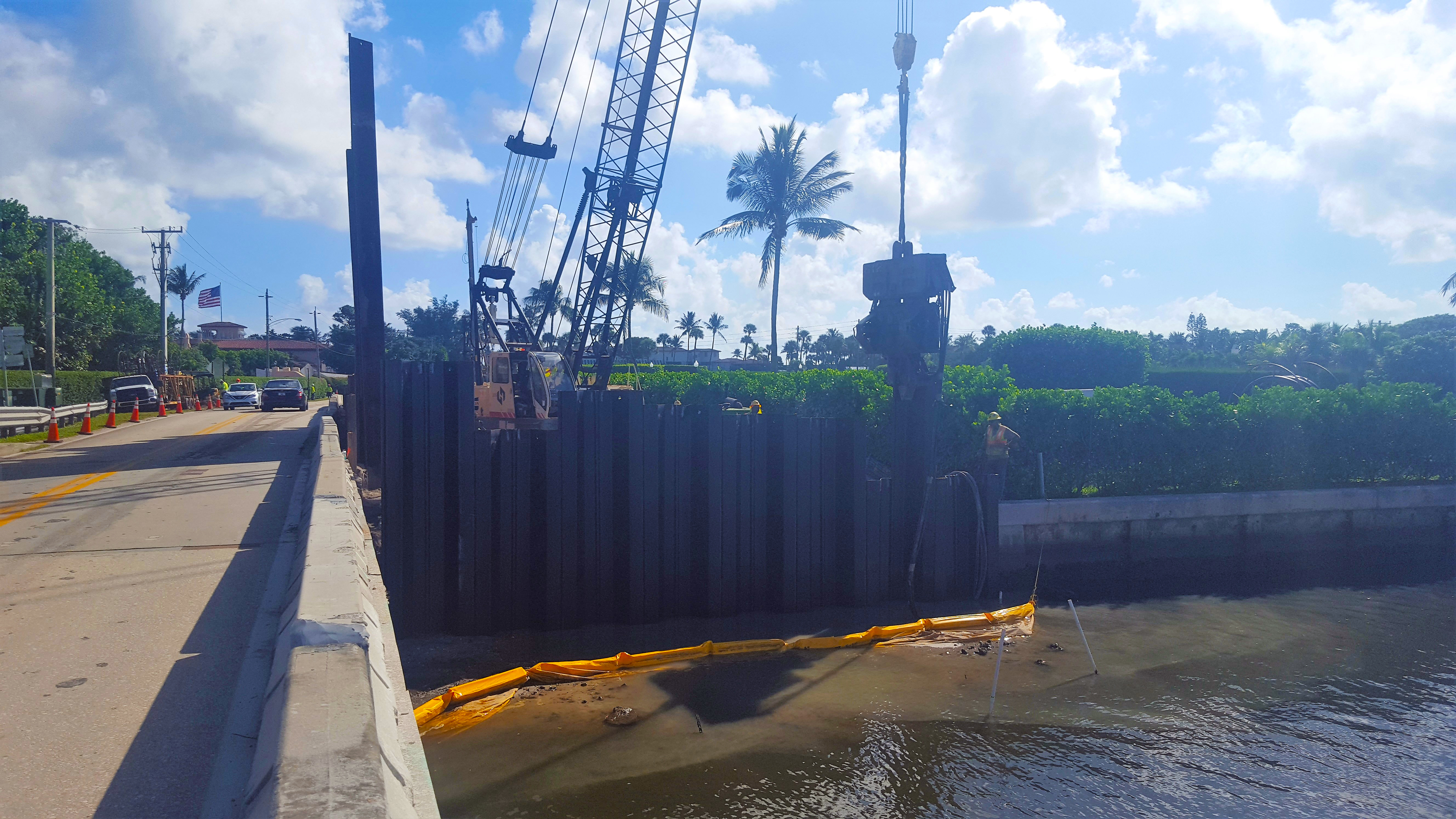 Crews work on installing temporary construction wall at the tide relief bridge. October 2018