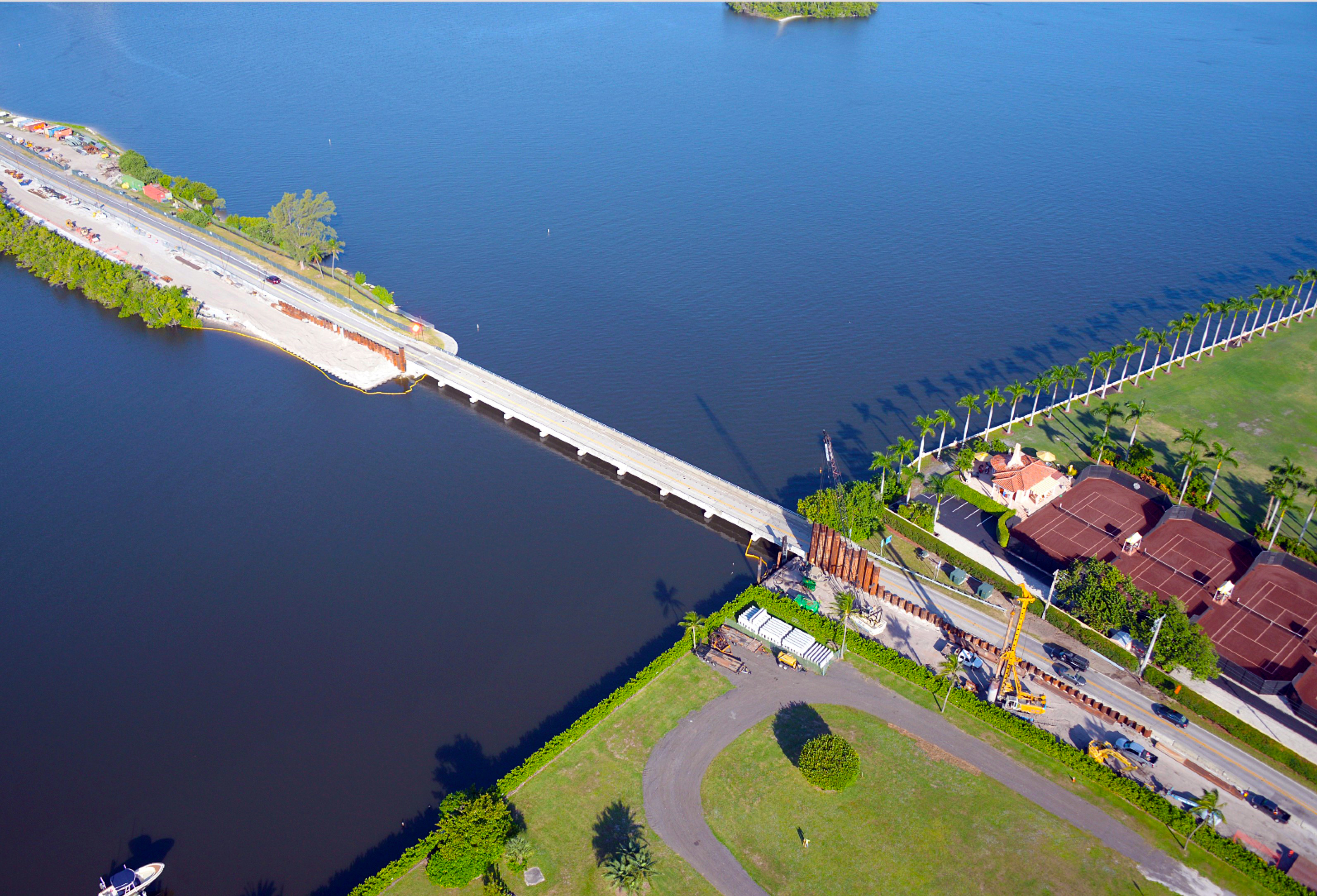 An overhead view of ongoing construction at the tide relief bridge. October 2018